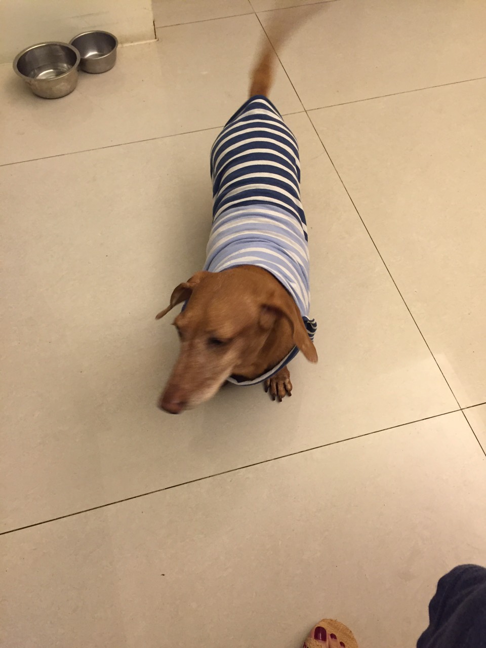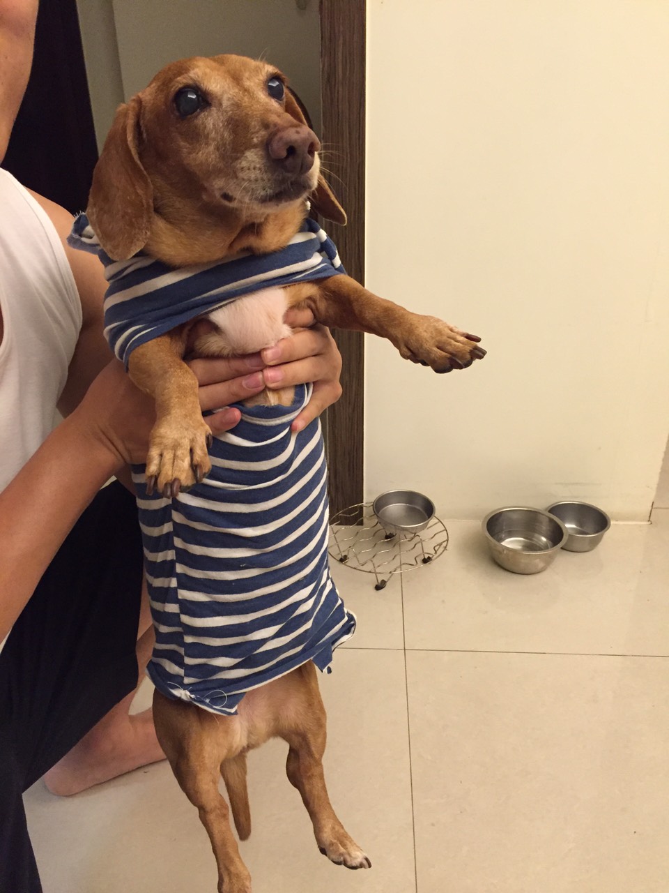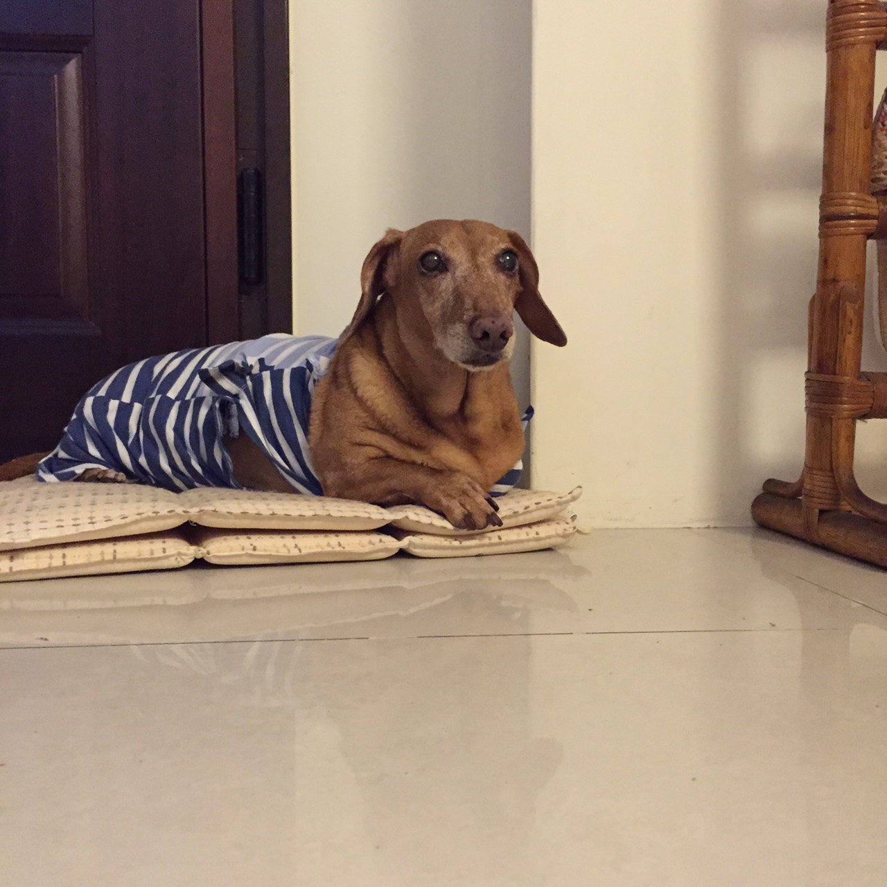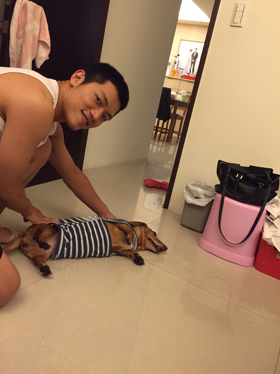 臘腸因為脖子很租,所以領口比我原本的衣服還寬