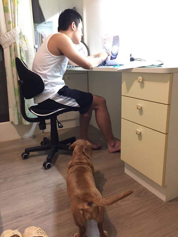 拿到縫紉機,第一件作品就是幫嘟嘟縫衣服!