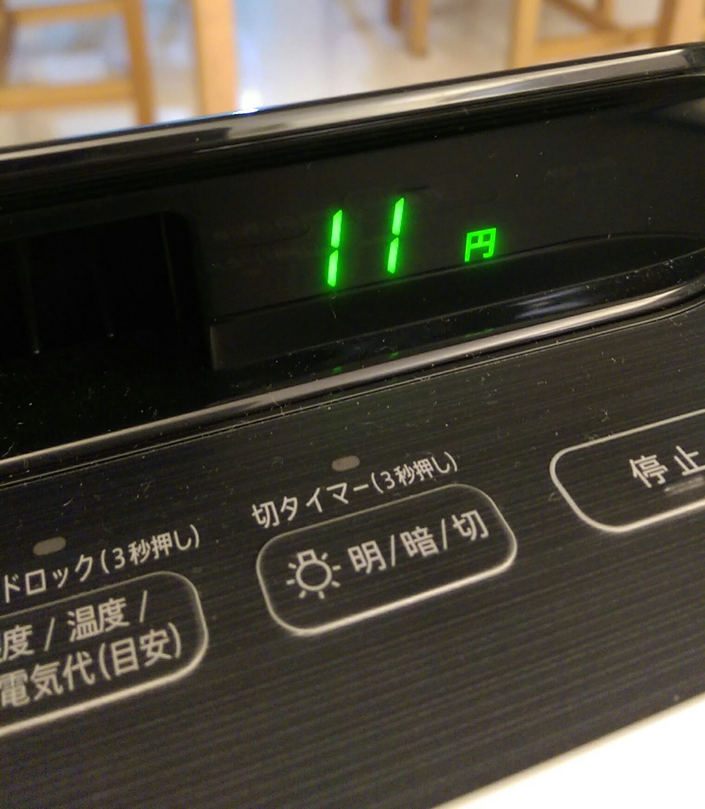 所以機器應該調整成電費顯示 11円 會最接近台灣的電費,只是你看到的數字需要乘0.26換算成台幣