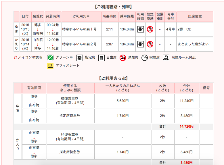 提前三天訂由布院之森號列車還有訂到來回座位