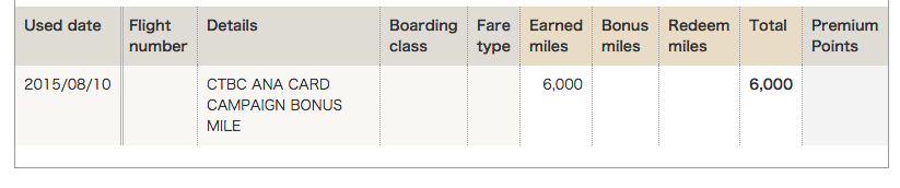 核卡後刷滿六筆888以上就有6000哩,三個月後發到ANA會員帳戶。