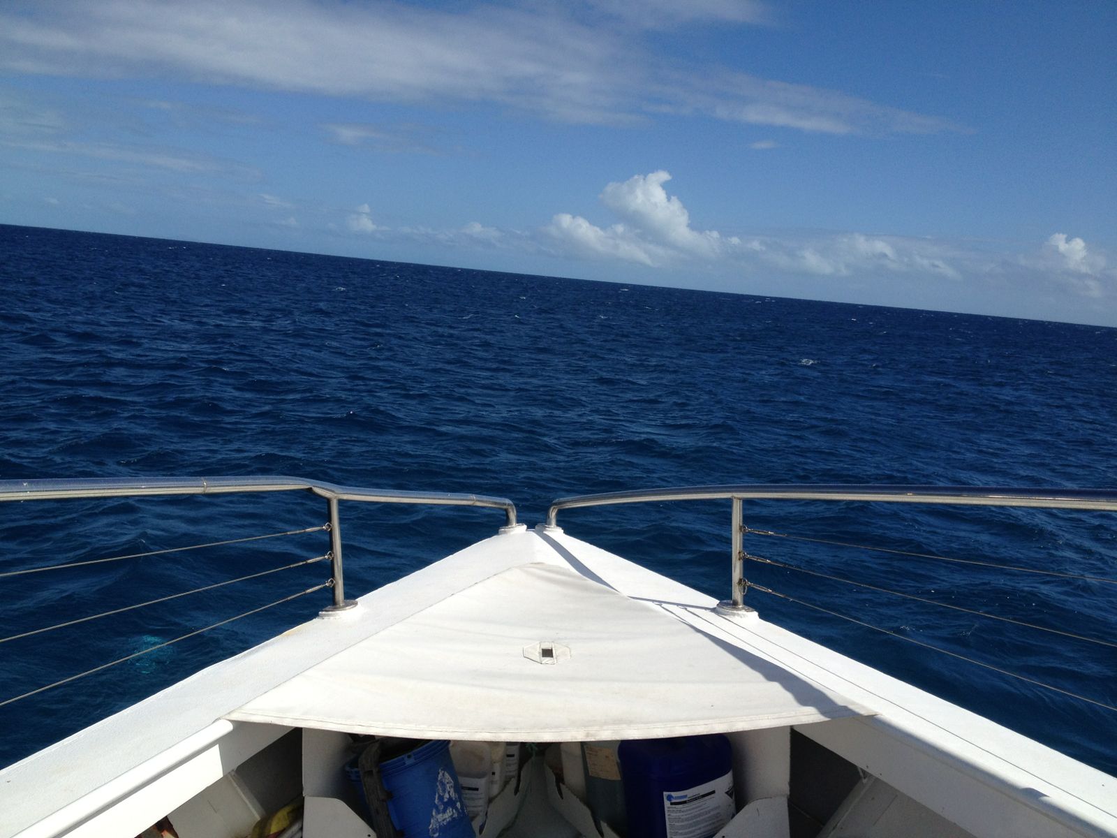 接下來是一個半小時的航程到Osprey V Reef,第一天的風浪比較大,還好我有吃暈船藥,有幾個客人吐的亂七八糟的,我們也要看客人有誰不舒服就給他一個嘔吐袋跟一些面紙,要是吐在船上的就要清理掉。